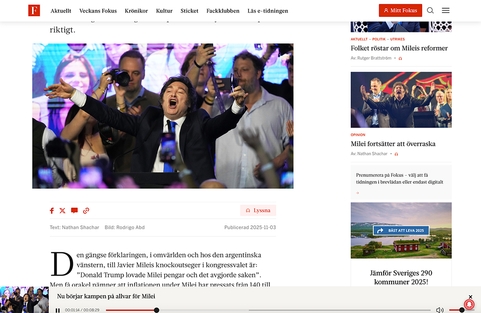 – Vi jobbar mycket med digitala magasin så vi är riktigt stolta att vårt hårda arbete uppskattas och hyllas av branschen. Vi har jobbat med Fokus länge, både med deras webbplats och app, så vi är jätteglada att få dela det här priset med dem, säger Jacob Valfridsson, projektledare på qte.